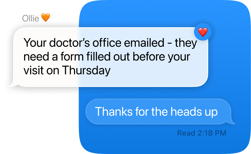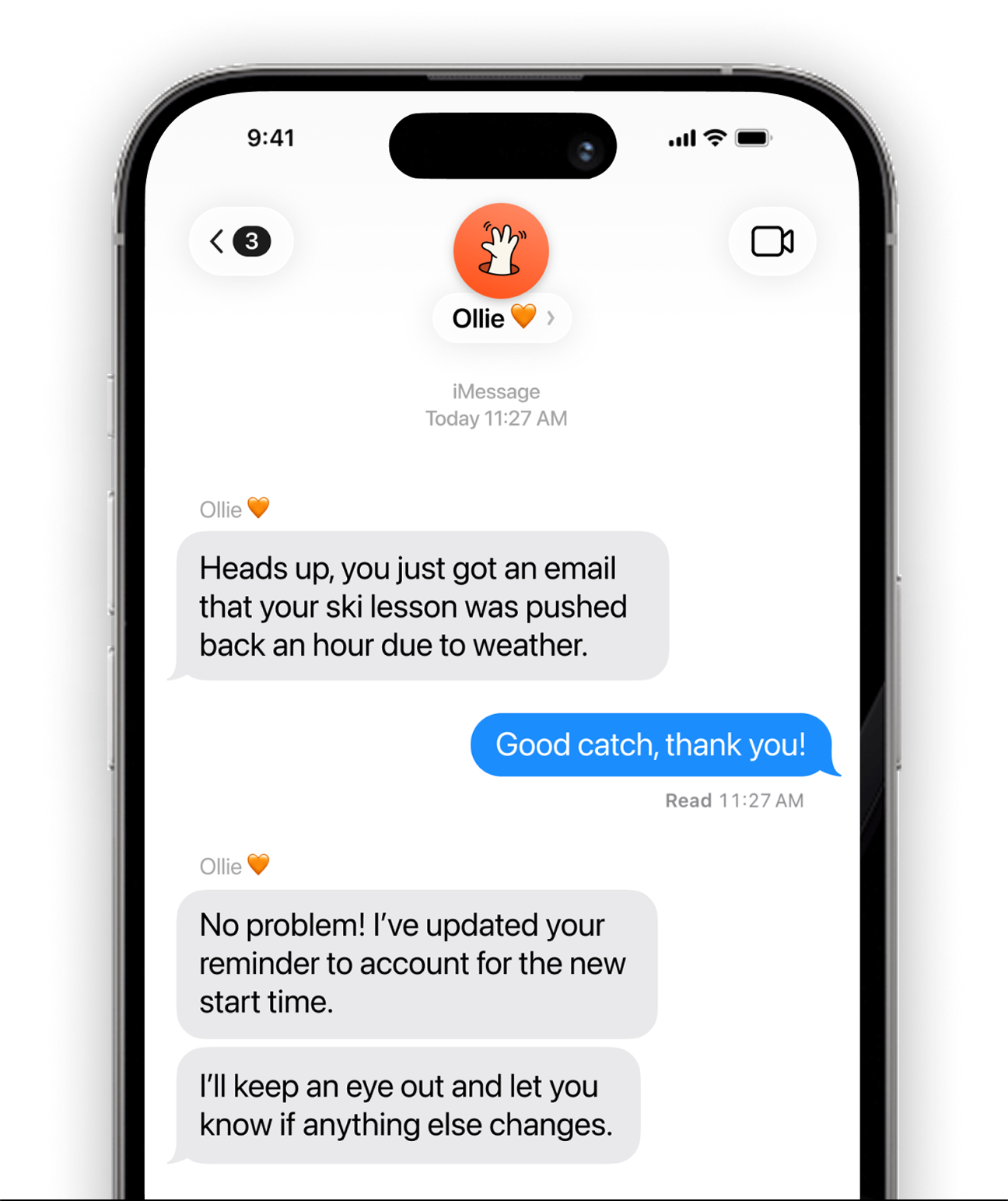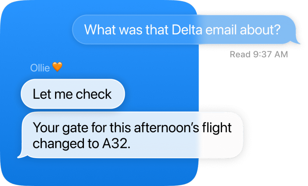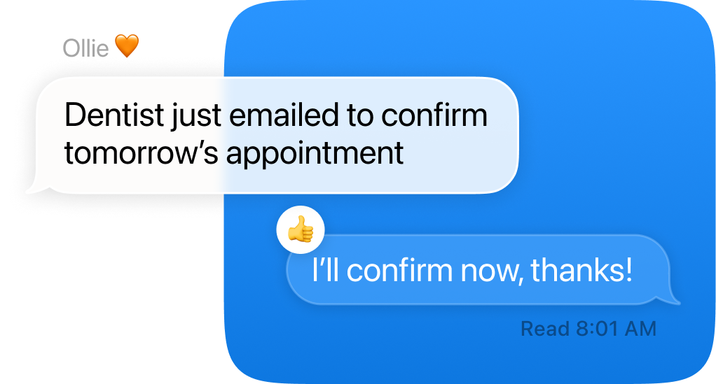 Ollie monitors your emails, calendars, and to-dos, and texts you when something important comes up. So you never miss what matters.