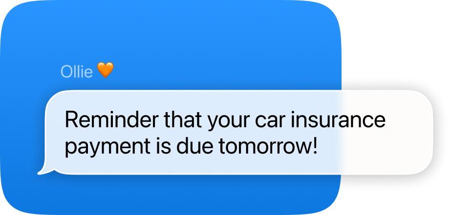 Ollie keeps track automatically and nudges you where you already are: in your text messages.